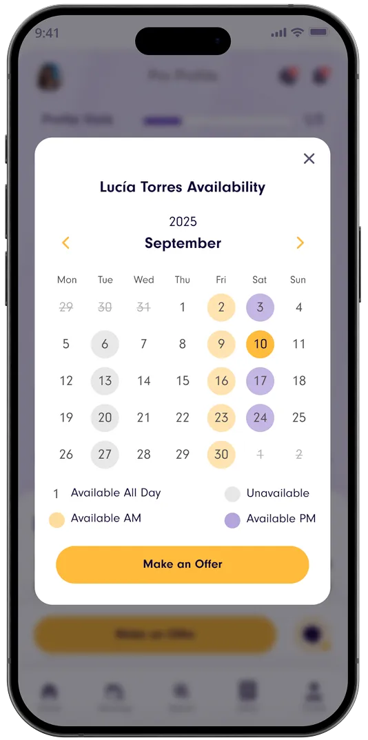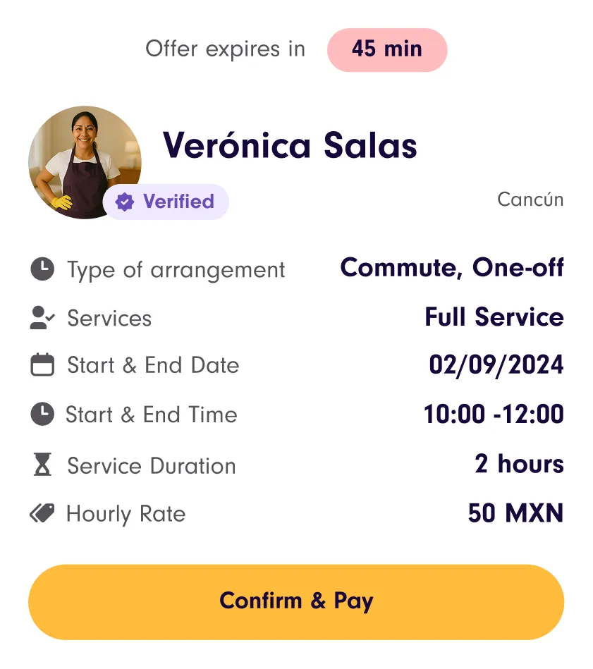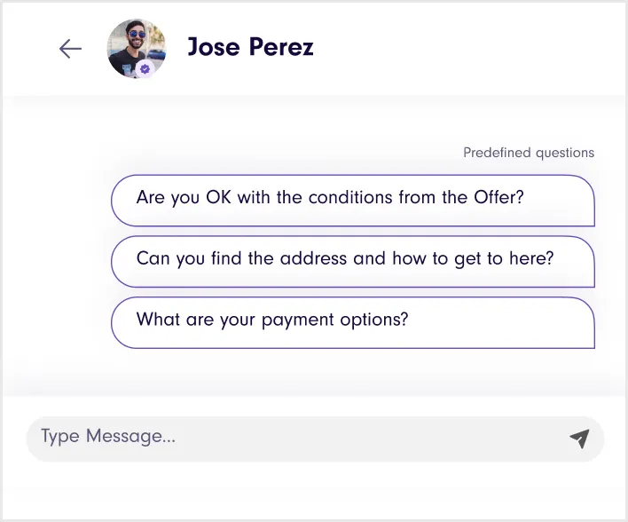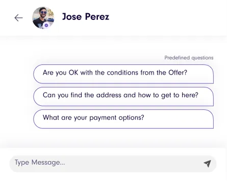 Use interactive offers and the in-app chat to set the date, time, and price, and easily reach an agreement with the Pro.