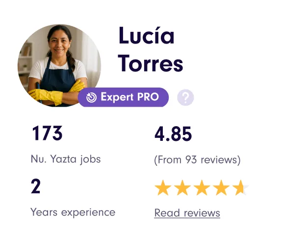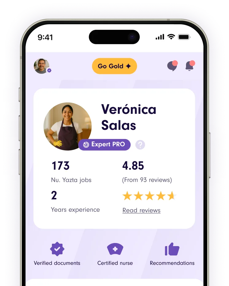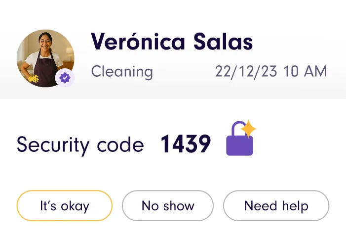 All workers must verify their identity and documents to appear in the app. Yazta also uses a Security Code: before the worker enters your home, you must give them a unique code from the app.