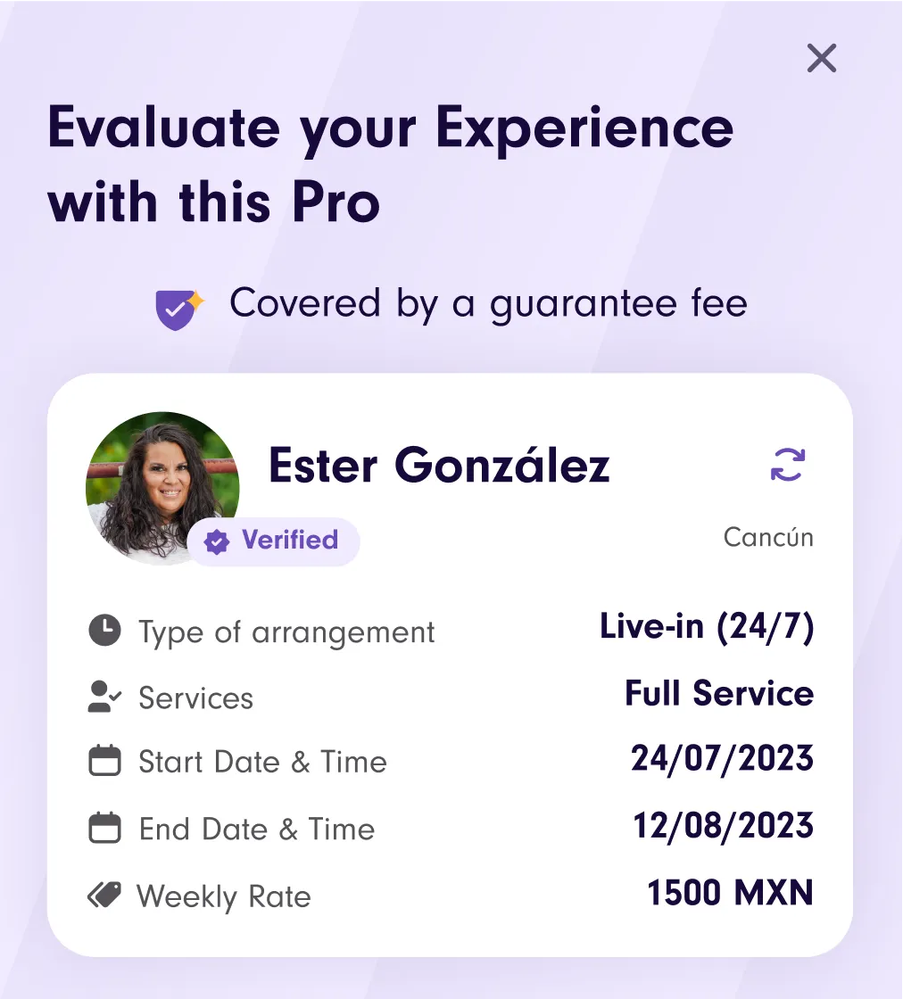 Recibe hasta dos servicios adicionales sin costo si tu experiencia no fue satisfactoria o si la trabajadora no se presentó.