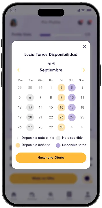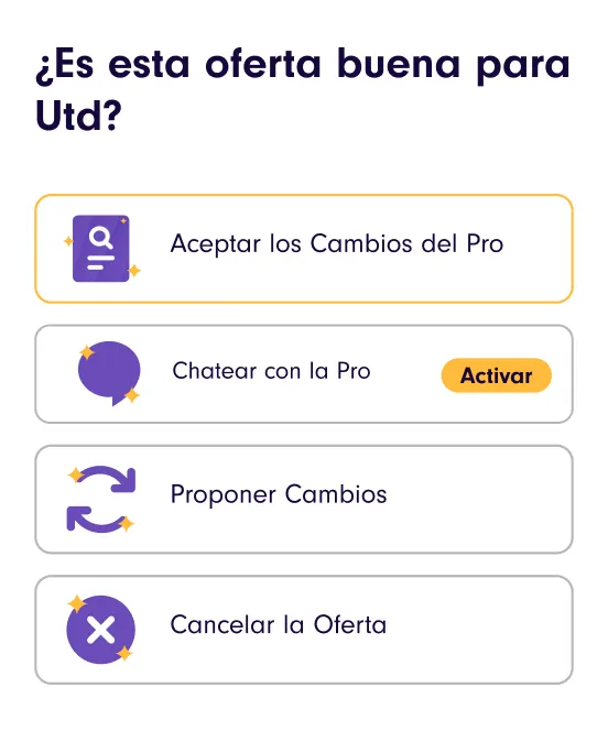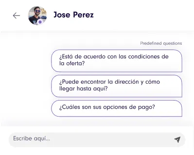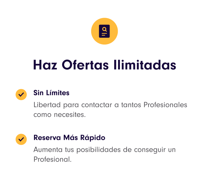 Usa ofertas interactivas y el chat en la app para definir fecha, hora y precio, y llegar a un acuerdo fácil con la Pro.
