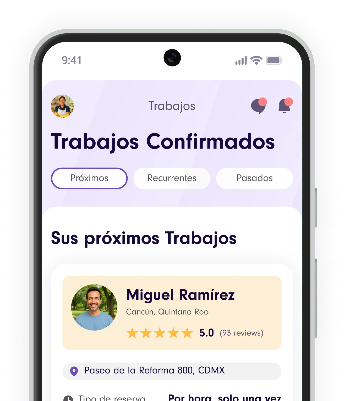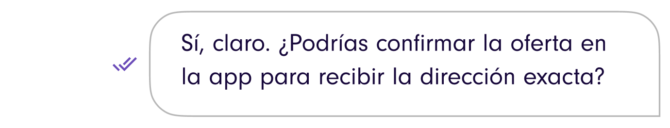 Usa el chat en la app para acordar los detalles, pero recuerda:El trabajo solo queda confirmado cuando el Cliente te manda la oferta final y tú la aceptas.Ahí se libera la dirección exacta.